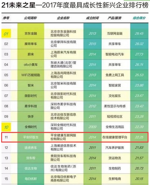 近日,《中國企業(yè)家》 21 未來之星百強企業(yè)揭曉,安然全醫(yī)生、京東金融、摩拜等具有極強成長性的新興企業(yè)均榜上有名。此次安然全醫(yī)生作為移動醫(yī)療獨角獸企業(yè)排名總榜單第十一位,也是唯一入圍榜單的在線健康辦理平臺。