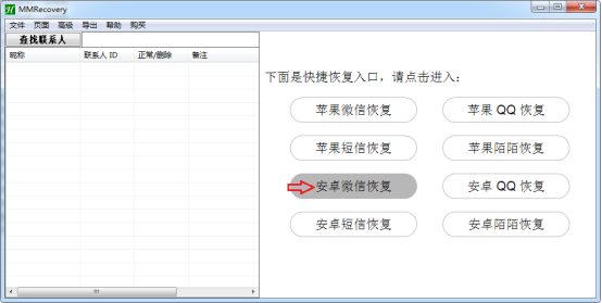 本文所使用的微信恢復工具是 MMRecovery。該工具是一個全面的手機通訊消息的恢復軟件,可以實現(xiàn)對安卓和蘋果手機微信、QQ、短信以及陌陌等刪除聊天記錄的快速恢復。