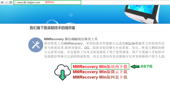 在瀏覽器的地址欄中輸入MMRecovery產品的官方網(wǎng)址 ( ),打開官方網(wǎng)頁后在網(wǎng)頁中找到下載地址點擊下載,該工具是綠色軟件下載后解壓一下就可以直接使用了。