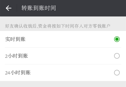 正所謂,涉及個(gè)人資金安適的問(wèn)題無(wú)小事。對(duì)于轉(zhuǎn)賬到賬時(shí)間的設(shè)置,其實(shí)我們?cè)偈煜げ贿^(guò)的微信支付上,也有類似的做法。按照微信支付的錢包相關(guān)設(shè)置功能,微信轉(zhuǎn)賬可以設(shè)置差別的到賬時(shí)間,目前有三個(gè)選項(xiàng):實(shí)時(shí)到賬、2小時(shí)到賬和24小時(shí)到賬。而支付寶上個(gè)人暫時(shí)沒(méi)有發(fā)現(xiàn)這類設(shè)置,可見(jiàn),微信在這個(gè)支付細(xì)節(jié)上還是考慮得更多的。