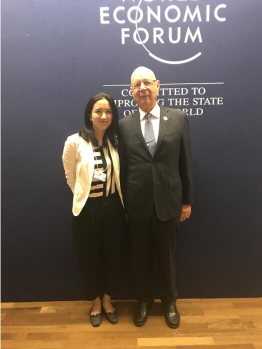 摩拜單車創(chuàng)始人胡瑋煒與世界經(jīng)濟論壇主席施瓦布會談時合影