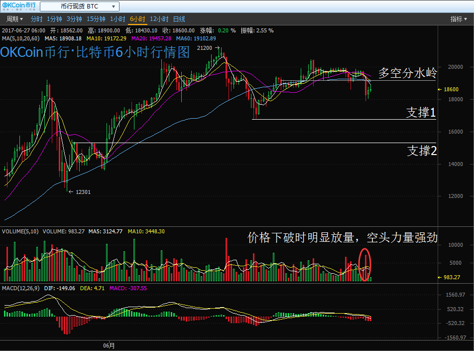 按照國(guó)內(nèi)知名的數(shù)字資產(chǎn)交易平臺(tái)OKCoin幣行的數(shù)據(jù)顯示,比特幣昨天( 6 月 26 日)價(jià)格開盤后一直呈小幅盤整格局運(yùn)行,這種僵局一直延續(xù)到亞市午盤 13 點(diǎn)時(shí)段,隨后價(jià)格結(jié)束整理快速下跌,最低跌至收盤前夕的 17862 一線低位,創(chuàng)下本月下旬最大單日跌幅。截止發(fā)稿前,價(jià)格小幅回升,最新交投于 18600 附近。