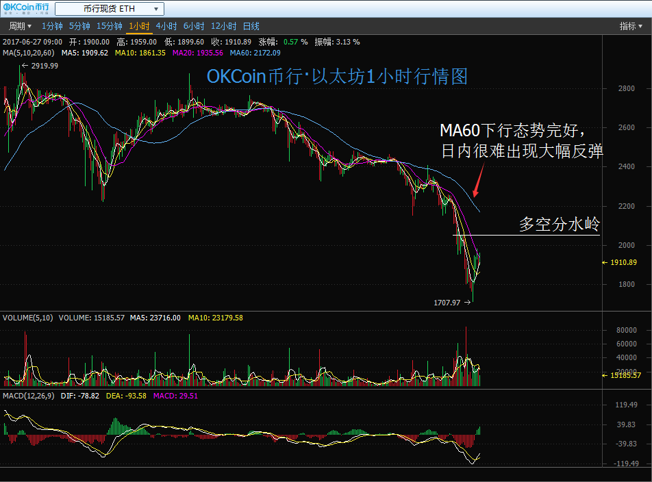 綜上所述,由于價(jià)格連續(xù)大跌已經(jīng)消化了大部分主動(dòng)賣空動(dòng)能,而且與長(zhǎng)周期均線形成較大乖離,這將會(huì)對(duì)價(jià)格產(chǎn)生回拉作用,價(jià)格日內(nèi)或?qū)⒕S持低位盤整或反彈格局運(yùn)行。日內(nèi)上方關(guān)注 2050 一線多空分水嶺,價(jià)格未放量上破前不成追多;主要采取逢低短線參與,下關(guān)注 1800 一線支撐,價(jià)格只要不放量跌破此價(jià)位都可輕倉(cāng)參與此反彈行情。