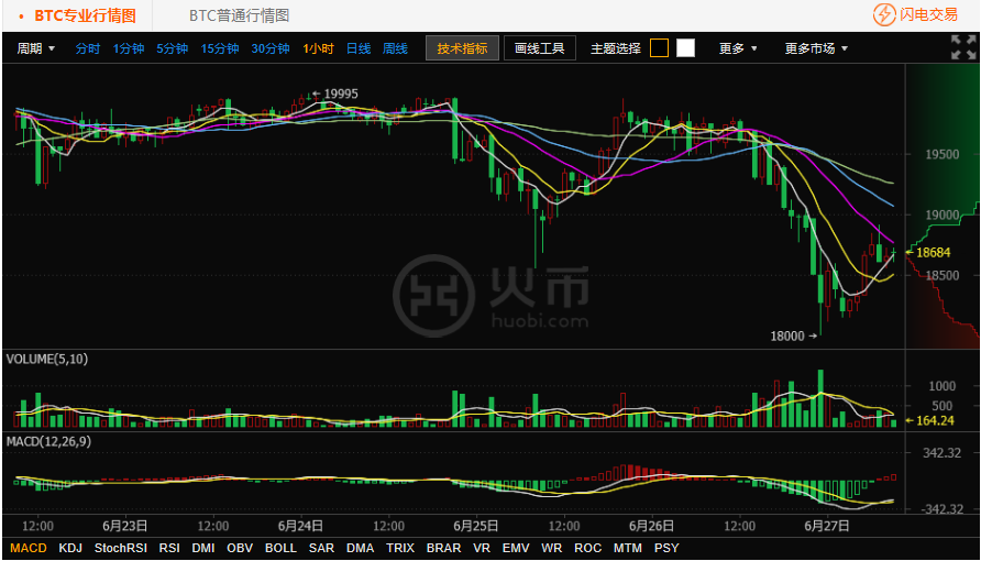 按照中國(guó)安適可信賴的比特幣交易平臺(tái)火幣網(wǎng)行情顯示,截至北京時(shí)間 6 月 27 日 10 點(diǎn),比特幣價(jià)格為 18670 元人民幣。火幣網(wǎng)比特幣今日開(kāi)盤(pán)價(jià)格為 18229 元,目前最高價(jià)格為 18910 元,最低價(jià)格為18113. 04 元,漲幅2.2%。
