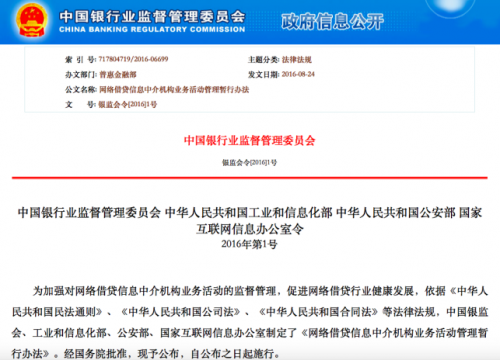 2015年12月,《網(wǎng)絡(luò)借貸信息中介機(jī)構(gòu)業(yè)務(wù)活動(dòng)辦理暫行措施(征求意見(jiàn)稿)》發(fā)布,提出了網(wǎng)貸經(jīng)營(yíng)的12條禁令。2016年8月《網(wǎng)絡(luò)借貸信息中介機(jī)構(gòu)業(yè)務(wù)活動(dòng)辦理暫行措施》正式出臺(tái),在《征求意見(jiàn)稿》的基礎(chǔ)上進(jìn)一步完善和細(xì)化。