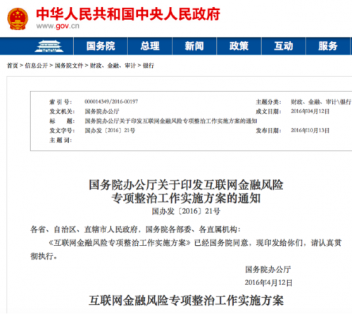 為規(guī)范互聯(lián)網(wǎng)金融業(yè)態(tài),優(yōu)化市場(chǎng)競(jìng)爭(zhēng)環(huán)境,遏制風(fēng)險(xiǎn)案件頻發(fā),2016年4月《互聯(lián)網(wǎng)金融風(fēng)險(xiǎn)專項(xiàng)整治工作實(shí)施方案》表態(tài)。方案預(yù)計(jì)用一年時(shí)間,在全國(guó)范圍內(nèi)啟動(dòng)有關(guān)互聯(lián)網(wǎng)金融領(lǐng)域的專項(xiàng)整治工作。