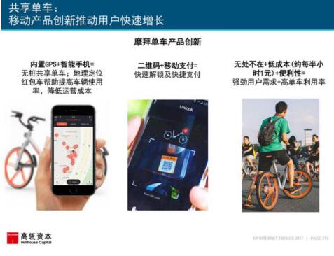 全球知名科技雜志《連線》將摩拜單車列為“未來影響全球交通格局的企業(yè)”,有“互聯(lián)網(wǎng)女皇”之稱的瑪麗·米克爾在美國Code大會上發(fā)布的 2017 年的互聯(lián)網(wǎng)趨勢陳訴中,單獨提及摩拜單車,闡述了其物聯(lián)網(wǎng)、地理定位為基礎的科技和模式創(chuàng)新。摩拜單車的國際影響力變得越來越大,為在國際層面尋求科技、戰(zhàn)略合作,以及國際化進程都帶來了諸多利好。