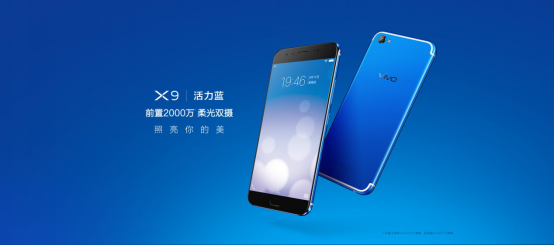 Vivo X9 采用象征激情和堅韌的活力藍為主色調(diào),白色的U形天線和藍色巧妙配合。除了配色,Vivo