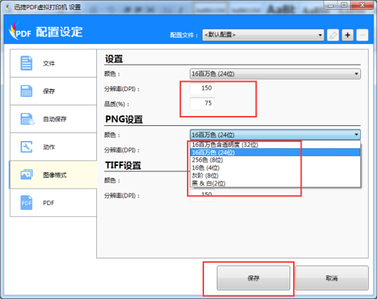 五、按照本身需求,調整圖像分辨率和品質百分比,以及PNG顏色或TIFF顏色設置選擇,選擇設置完成后,點擊生存即可;