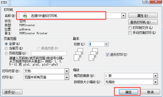 六、生存完成后,我們只要打開需要設置圖像格式的文檔,點擊打印,打印時打印機選擇【迅捷PDF虛擬打印機】,此時并沒有真正打印,我們只是通過虛擬打印,將文件通過PDF虛擬打印機設置的格式生存,點擊確定后,文件即以PDF的格式生存,而文件中的圖像就全部跟我們上面所設置的一致。