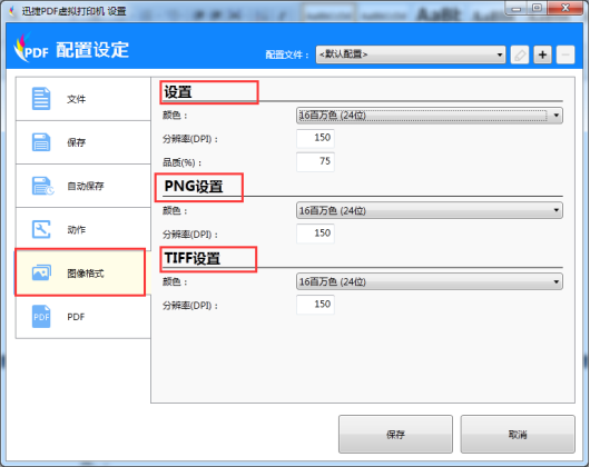 四、進入后,可看到【設置】、【PNG設置】和【TIFF設置】三大設置選項;