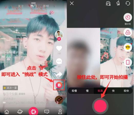 在最新的版本更新中,音樂(lè)短視頻領(lǐng)跑者奶糖推出了名為“Battle”的新玩法,如果你對(duì)其他人所錄制的短視頻感興趣,可以通過(guò)APP上的“B”按鈕發(fā)起“挑戰(zhàn)”,最后可以合成一個(gè)雙屏內(nèi)容的短視頻。