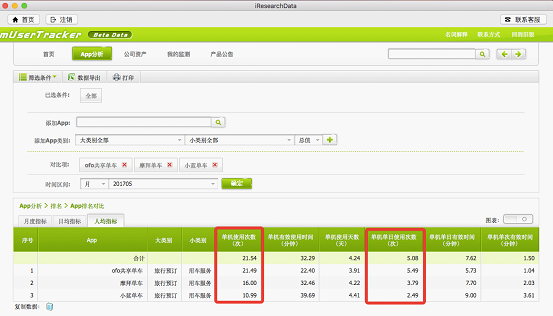 艾瑞咨詢的最新數(shù)據(jù)還顯示,ofo單個用戶月度平均使用次數(shù)為21. 49 次,位居第一,摩拜單個用戶月均使用次數(shù)為 16 次,位居第二,小藍(lán)單車為10. 99 次,位居第三。ofo用戶月均使用頻次比摩拜高出近5. 5 次、比小藍(lán)單車高出超 10 次。