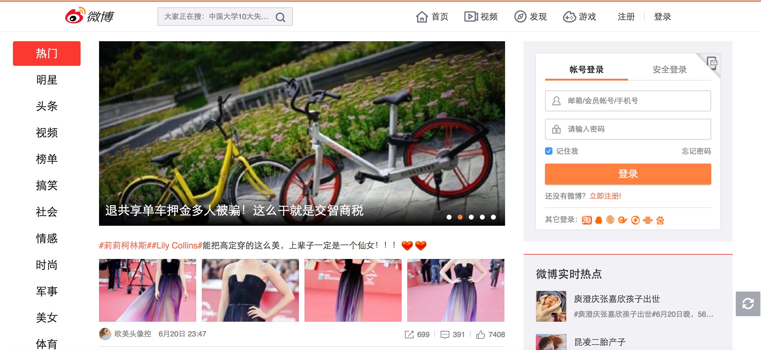 之所以微博股價(jià)暴漲,關(guān)鍵原因有且只有一個(gè),那就是:內(nèi)容化。這次“視聽節(jié)目關(guān)停風(fēng)波”也與這一戰(zhàn)略息息相關(guān),因?yàn)槲⒉┮敫鄡?nèi)容,視聽內(nèi)容自然不成或缺?,F(xiàn)在微博的內(nèi)容戰(zhàn)略還在繼續(xù)推進(jìn),這幾天打開微博網(wǎng)頁(yè)版,還以為點(diǎn)錯(cuò)了——因?yàn)轫?yè)面跟今日頭條網(wǎng)頁(yè)版太像,不信看圖: