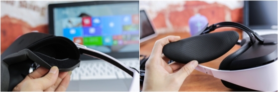 鏡片與海綿墊設(shè)計(jì)有必然的距離,這也是為了滿(mǎn)足差別用戶(hù)的設(shè)計(jì),如果你是一位近視眼玩家,在此也無(wú)需擔(dān)憂(yōu)無(wú)法體驗(yàn),它的內(nèi)部空間足以支持佩戴眼鏡使用。