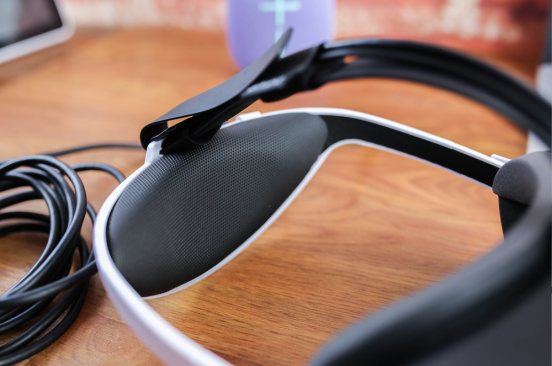 頂部位置是線材的接入口,通過(guò)頂梁頭帶整齊的理線扣延續(xù)到后背,露出線只有2根,所看起來(lái)非常簡(jiǎn)潔雅光,值得一提的是頂梁固定帶也是可以拆卸的,用戶(hù)可按照自身的環(huán)境需求決定。