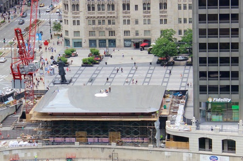 蘋果目前正在建設(shè)的芝加哥零售店位于北密歇根大道的“先鋒廣場(chǎng)”,就在芝加哥河邊,靠近歷史悠久的密歇根大街橋。