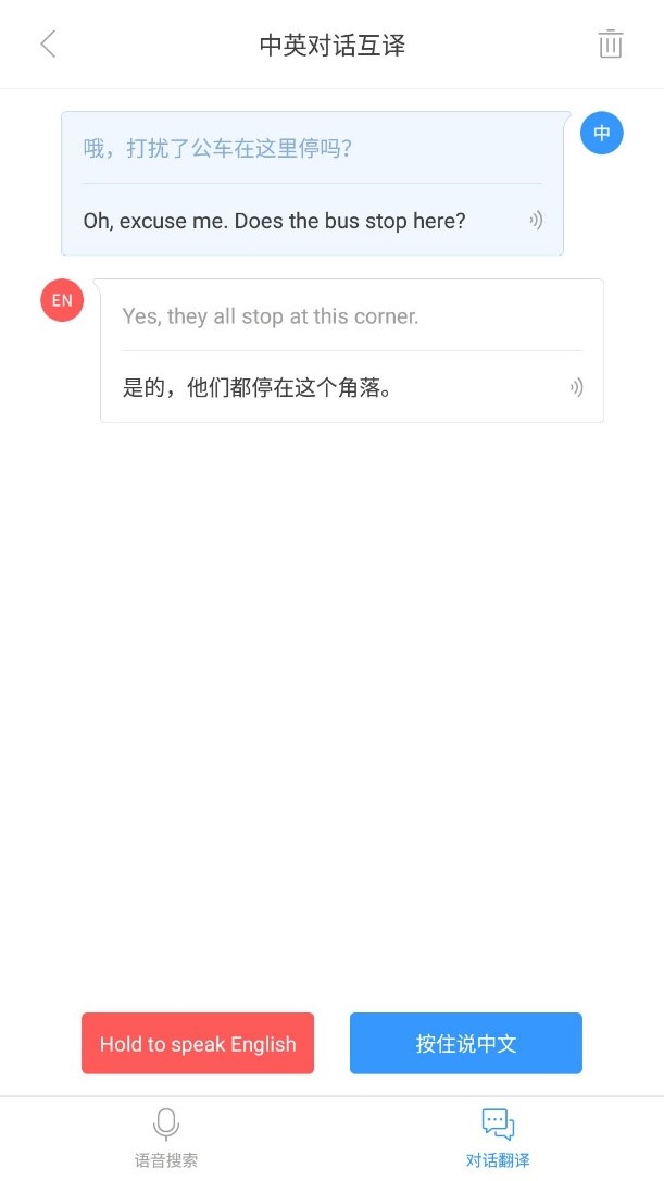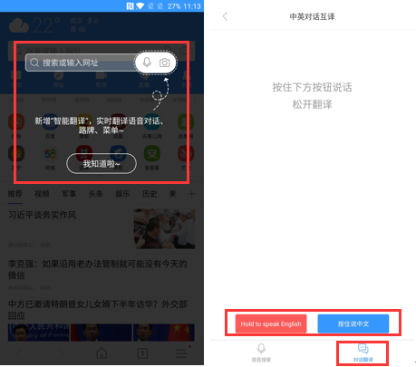 語音對話功能可以在你需要與外國人進(jìn)行對話時,按住藍(lán)鍵說中文,或按住紅鍵讓對方說英文,語音對話翻譯功能就會對語句進(jìn)行翻譯,以對方的語言說給對方聽。同時屏幕上也會顯示對話的文字記錄和翻譯結(jié)果。比擬需要其他翻譯軟件,搜狗手機瀏覽器的語音對話翻譯結(jié)果準(zhǔn)確度更加高,操作也更加簡單便利。小編親測這一功能后,發(fā)現(xiàn)對話不再有障礙了。以后的出境游,小編就可以跟外國友人愉快的對話了。