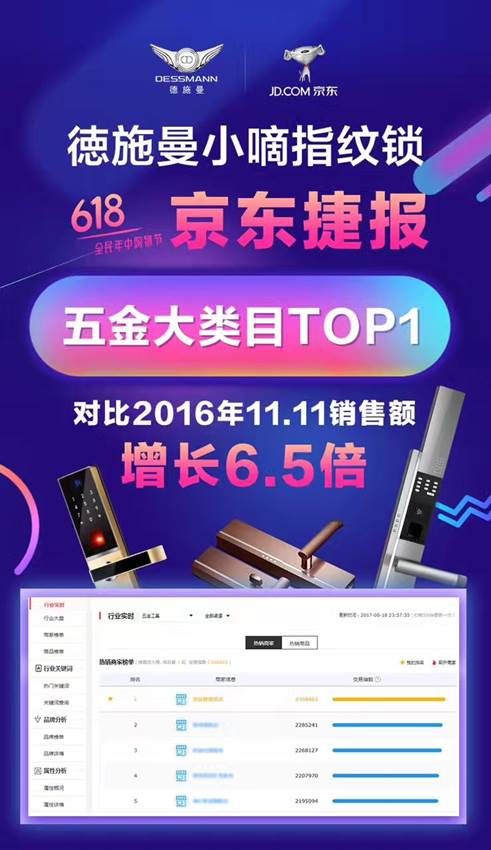 成績(jī)固然可喜,但這些成績(jī)背后的另一個(gè)現(xiàn)象更值得我們關(guān)注。兩三年前智能鎖在天貓、京東還只是基礎(chǔ)建材/五金工具兩大類目中一個(gè)毫不起眼的小單品。而作為智能鎖行業(yè)的領(lǐng)頭羊,德施曼不但新創(chuàng)了一個(gè)云智能鎖的品類,更是在短短一年后的今天,就將智能鎖單品推上了上述兩大類目的銷量榜首,進(jìn)而帶動(dòng)了整個(gè)智能鎖行業(yè)的銷售發(fā)作。