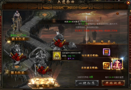 最后收獲 42 綁定元寶、 30 萬經(jīng)驗。每歷經(jīng)一個關(guān)卡都會有不菲收益,關(guān)鍵是你的戰(zhàn)力,實力必需過硬,才能扛住惡魔們的攻擊將其擊倒順利通關(guān)。繼續(xù)吧,傲天西游之路中朝著18、19、 20 關(guān)前進(jìn)!