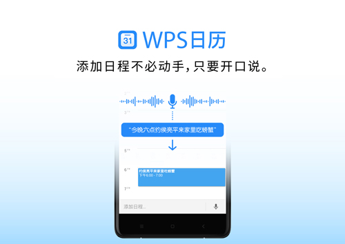 作為一款既能實現(xiàn)文本創(chuàng)建日程,又提供語音創(chuàng)建日程的日歷,WPS日歷很智能?!菊Z音新建】功能不但能聽懂你說了什么,更能從中提取時間、事件和人物等關(guān)鍵信息,并將這些信息無誤地添加到您的日歷中。