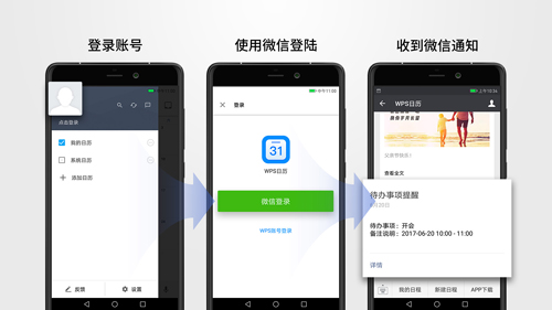 與智能手機自帶日歷差別,WPS日歷有安卓端APP、微信公眾號和Web端,只需登錄賬號,便可輕松實現(xiàn)三端數(shù)據(jù)同步,再也不消擔心因換手機而重新設(shè)定日程啦!