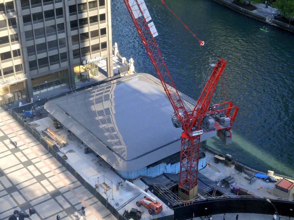 站長之家(ChinaZ.com) 6 月 23 日消息,蘋果正在建設(shè)中的位于芝加哥的全新旗艦零售店長得有點令人目瞪口呆。據(jù)本地媒體報道,蘋果這次一改往常,該店采用了玻璃幕墻及一塊超薄碳纖維屋頂設(shè)計,,而蘋果的 Logo 將會安置在屋頂之上,俯瞰上去像極了一部 Macbook 條記本。