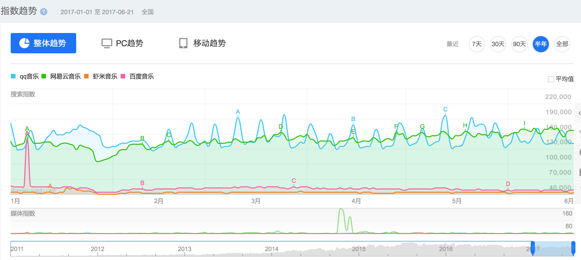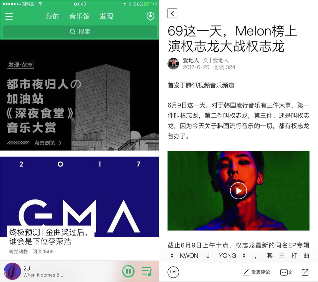 下面就對(duì)此進(jìn)行一一盤(pán)點(diǎn),文中將引入同期國(guó)外在線音樂(lè)進(jìn)展作為參考。