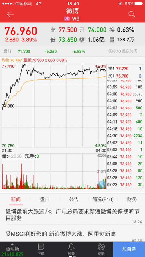 【TechWeb報道】6月22日晚間消息,微博股票盤前大跌6.83%。