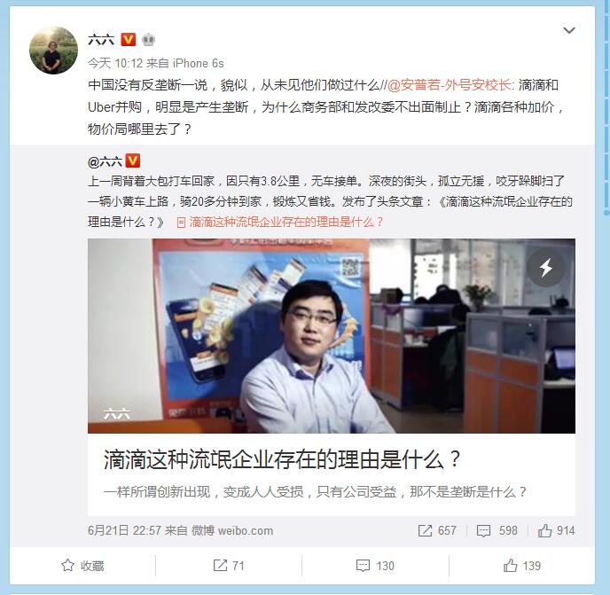 站長之家(Chinaz.com) 6 月 22 日消息 日前,知名女作家在微博上炮轟滴滴是一家流氓企業(yè),并講述了遭到滴滴專車亂加價的遭遇。今天下午,滴滴出行通過官方微博對此進(jìn)行了回應(yīng),并體現(xiàn)動態(tài)加價的費用100%歸司機所有,滴滴平臺分文不取。