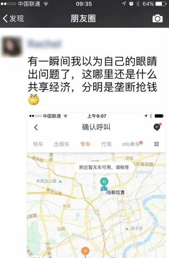 六六在微博上體現(xiàn),一段 20 公里的叫車,上浮1. 5 倍車資,估價 163 元;4. 5 公里,收費40。下雨天加價、上下班高峰加價、近路加價、附近打車人多加價、它不加價的時候,基本是你不需要車的時候。