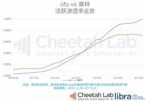 而更值得一提的是,比擬一季度,ofo的滲透率增長(zhǎng)率近92%,摩拜增長(zhǎng)率僅為46%,ofo甩開摩拜 2 倍之多,行業(yè)霸主地位已牢不成破。