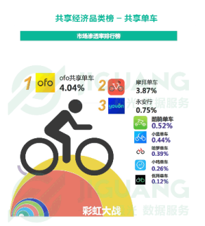 別的,按照另一權威第三方機構極光大數(shù)據(jù)對國內(nèi)app市場滲透率進行排名,ofo小黃車以4.04%的滲透率位居行業(yè)榜首,這意味著ofo得到了更多用戶的青睞。