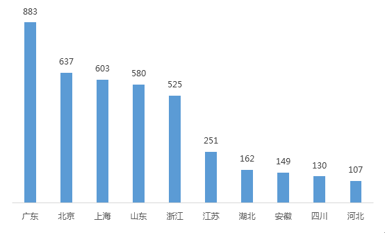 (圖為平臺最多的前十名省份)