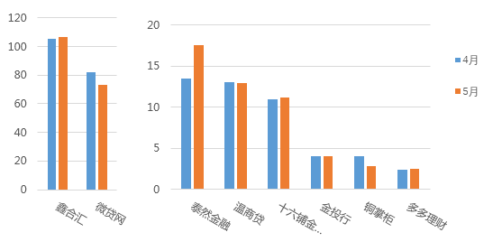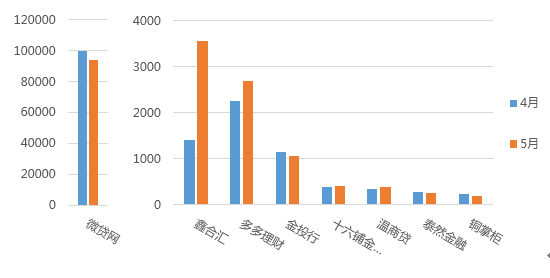 圖為 4 月& 5 月重點監(jiān)測平臺借款人數(shù)對比(單位:人)