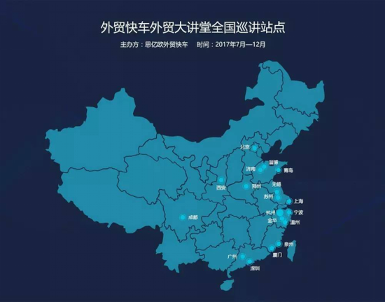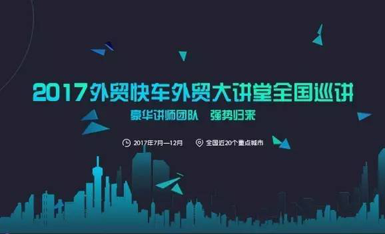 從 7 月份起, 2017 外貿(mào)快車外貿(mào)大講堂全國(guó)巡講即將再次啟航,帶著更大的規(guī)模,更長(zhǎng)的時(shí)間,更豪華的講師團(tuán)隊(duì),強(qiáng)勢(shì)歸來。