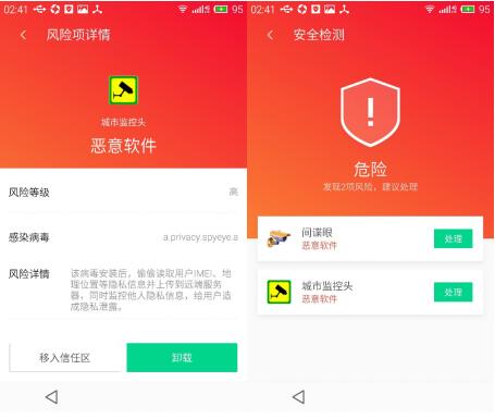 需要注意的是,家用攝像頭使用中還需搭配相應(yīng)軟件來(lái)操作。騰訊手機(jī)管家安適專家楊啟波指出,攝像頭遠(yuǎn)程操作軟件也可能潛藏竊取隱私的風(fēng)險(xiǎn)。近日,騰訊手機(jī)管家查殺兩款病毒軟件:“城市監(jiān)控頭”和“間諜眼”,以公共場(chǎng)所攝像頭地址為由,誘導(dǎo)用戶下載安置。其中,“城市監(jiān)控頭”包羅名為“a.privacy.spyey”的木馬病毒,其風(fēng)險(xiǎn)在于偷偷讀取用戶IMEI、地理位置等隱私信息并上傳至遠(yuǎn)端辦事器,同時(shí)監(jiān)控他人隱私信息,給用戶造成信息泄露。