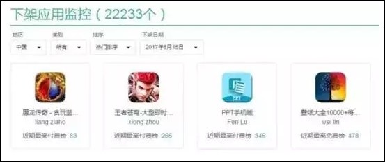 據(jù)前瞻網(wǎng)報道,截止到 6 月 16 日,據(jù)多家媒體使用移動推廣數(shù)據(jù)平臺ASO100 查詢,在App Store中國地區(qū)下架應(yīng)用已經(jīng)接近 3 萬, 6 月 15 日一天,應(yīng)用下架數(shù)量超過 2 萬,其中游戲類應(yīng)用超過了 1 萬個,《天天酷跑》等熱門游戲也包羅在內(nèi)。