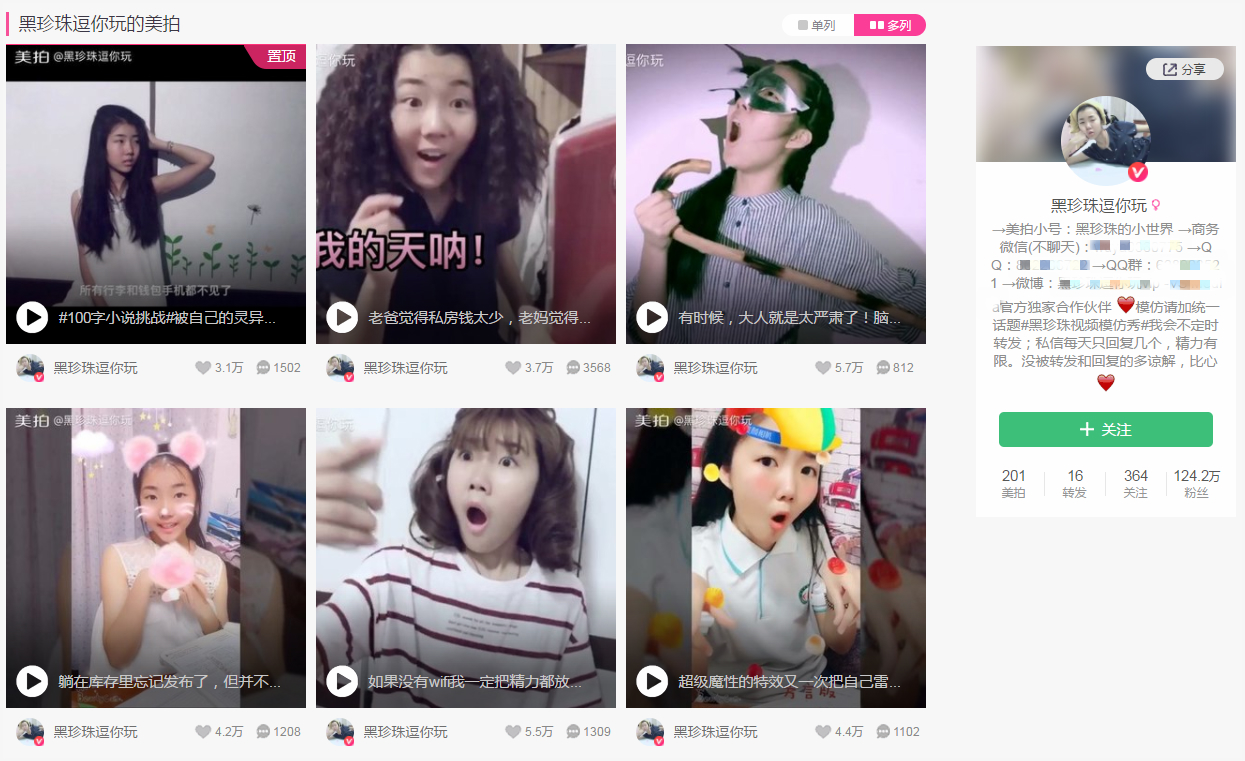 在美拍上, 4 歲半的小山竹擁有 145 萬名粉絲,已經(jīng)成為美拍上的“小網(wǎng)紅”。在小山竹 2 歲時(shí),山竹媽媽就開始在美拍上分享女兒的一些日常視頻。視頻發(fā)布后,小孩可愛的形象吸引了一批粉絲的喜愛與關(guān)注,美拍上的小視頻點(diǎn)贊基本過萬。 2016 年,小山竹多次受到電視臺的邀約,登上CCTV網(wǎng)絡(luò)春晚、歡樂中國人等節(jié)目,被更多不雅觀眾熟知。除了小山竹外,美拍上還有小蠻、小布丁等多個(gè)小網(wǎng)紅。其中小蠻被稱“最小網(wǎng)紅”,光是直播吃飯就吸粉 40 多萬,多個(gè)小視頻的點(diǎn)贊數(shù)超過 10 萬。