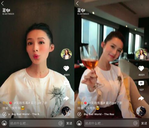 陪同著一段口哨輕音樂響起,wuli沁妞對起音樂口型仿佛原唱般靈活自如,跟著節(jié)奏帥氣起舞,期間其兩位男性好友也現(xiàn)身助陣,三人陣型統(tǒng)一歡樂上鏡,帥男靚女實(shí)屬養(yǎng)眼。隨后,李沁吹起口哨開啟四連拍模式,然而古靈精怪的少女沁并不甘于僅刷顏值,接下來更是大炫魔術(shù)手法一秒變出高腳杯,晃動紅酒杯的魅惑心情堪比波斯女神。最后,李沁以一個比心手勢ending結(jié)束,讓不少晃咖網(wǎng)友仍意猶未盡。