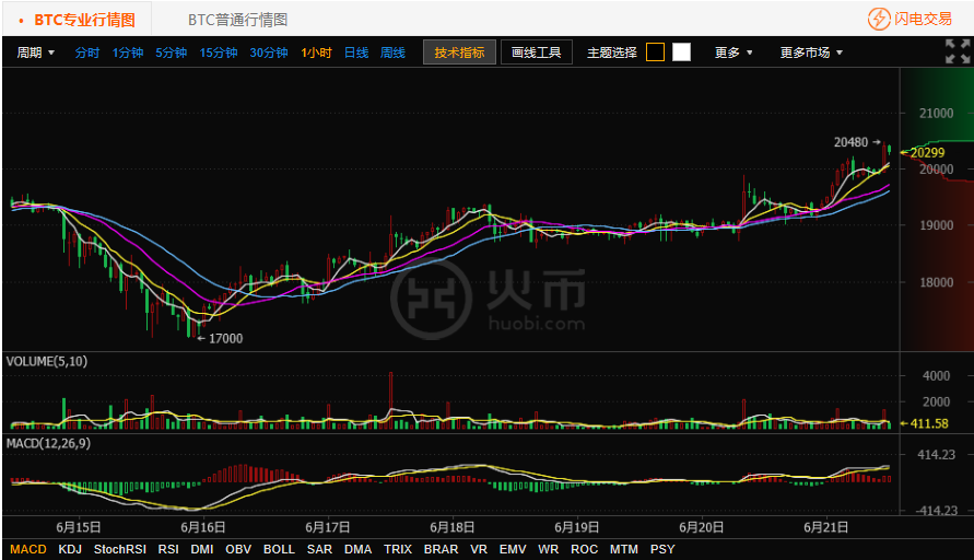 BTC比特幣行情小時(shí)圖來自火幣網(wǎng)