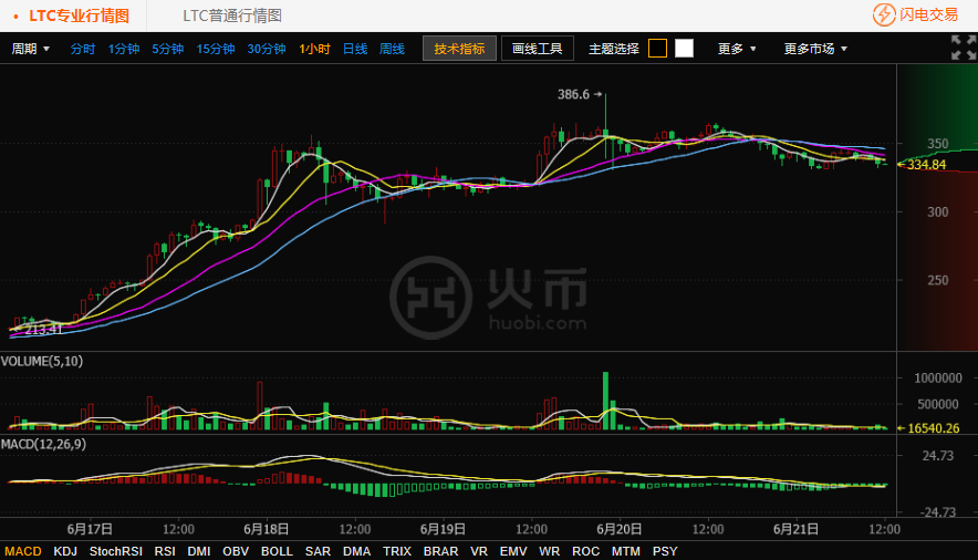 LTC萊特幣行情小時(shí)圖來自火幣網(wǎng)