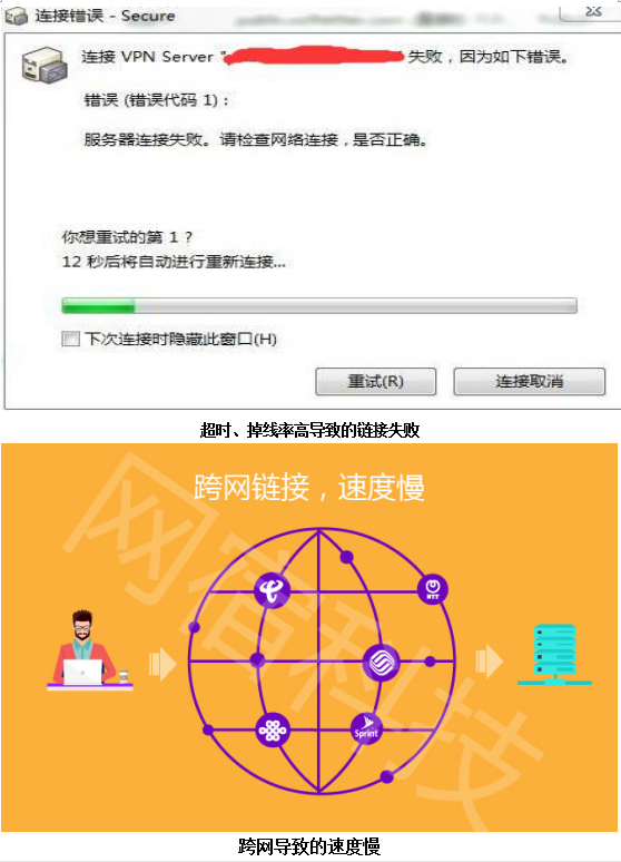 很多大型企業(yè)在跨區(qū)域通信場景中多采用VPN進行內(nèi)部組網(wǎng)傳輸,由于公網(wǎng)環(huán)境復雜,在加上高并發(fā)拜候和硬件負載過高等問題的出現(xiàn),使得傳統(tǒng)VPN在應(yīng)用過程中經(jīng)常出現(xiàn)Loading...、斷網(wǎng)等現(xiàn)象,所以小A君的懊惱不是個例外。