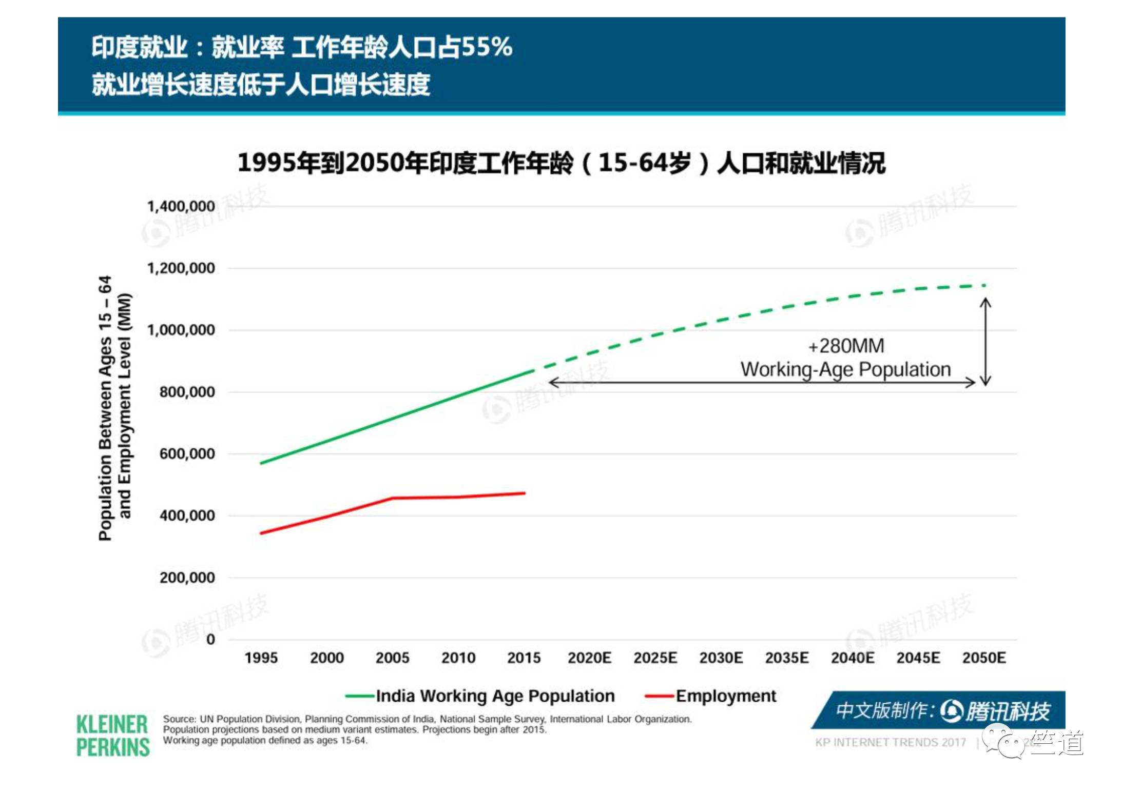 上圖為互聯(lián)網(wǎng)女王陳訴,顯示印度印度就業(yè)崗位增加速度明顯低于就業(yè)人口增加的數(shù)量