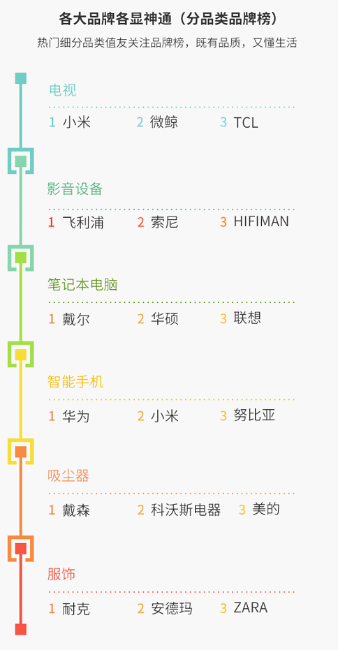 從什么值得買的數(shù)據(jù)可以看出,值友關(guān)注的家電品牌更趨向于高端國際路線,細(xì)分品類榜中科技類產(chǎn)品仍然以洋貨居多,為國民消費(fèi)升級提供了有力的證據(jù)。別的優(yōu)質(zhì)國貨也獲得了越來越多的認(rèn)可,在電視和手機(jī)兩個細(xì)分品類中,國貨已經(jīng)攻克了TOP3 的熱度。