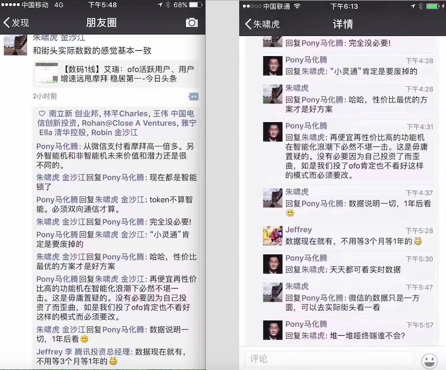 昨天和摩拜投資人馬化騰在伴侶圈互懟,護犢心切的雙方,在伴侶圈你來我往,讓吃瓜群眾好好看了場熱鬧。