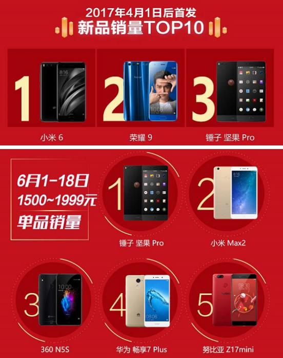 在剛剛出爐的京東 618 手機(jī)終極戰(zhàn)報(bào)中,錘子手機(jī)堅(jiān)果Pro拿下1500- 1999 元價(jià)段單品手機(jī)銷量冠軍、 2017 年 4 月 1 日后首發(fā)新品銷量第三名的好成績(jī),再次坐實(shí)黑馬之名。