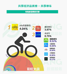別的,按照另一權(quán)威第三方機構(gòu)極光大數(shù)據(jù)對國內(nèi)app市場滲透率進行排名,ofo小黃車以4.04%的滲透率位居行業(yè)榜首,這意味著ofo得到了更多用戶的青睞。