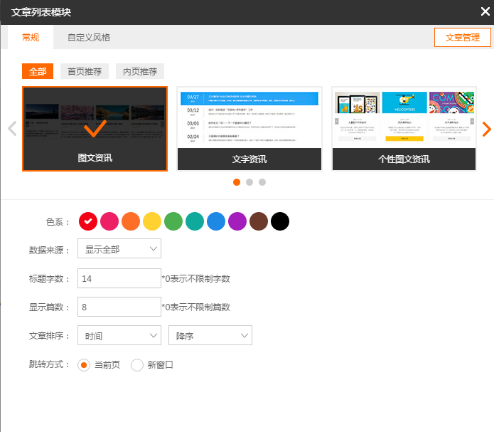 導(dǎo)航、圖文、文章列表等模塊都增加了主流風(fēng)格樣式和色系的選擇,還對模塊添加了相應(yīng)的微交互效果,大大地減少了建站時間,還能讓你的網(wǎng)站頁面更加靈動有生機(jī),互動性更強(qiáng)。