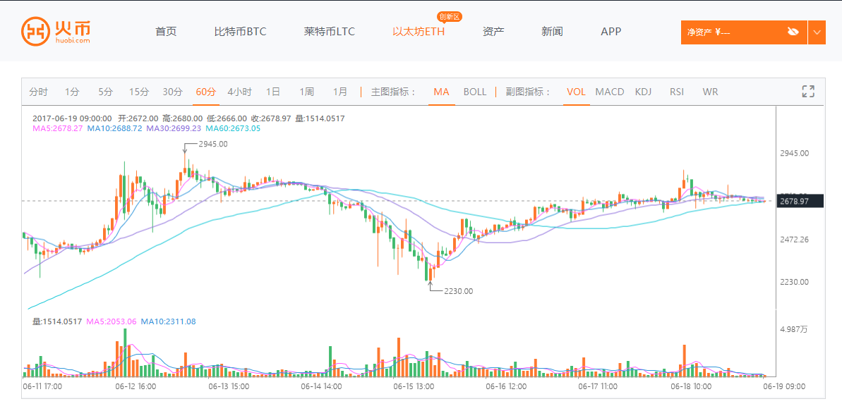 以太坊行情小時(shí)圖來(lái)自火幣網(wǎng)